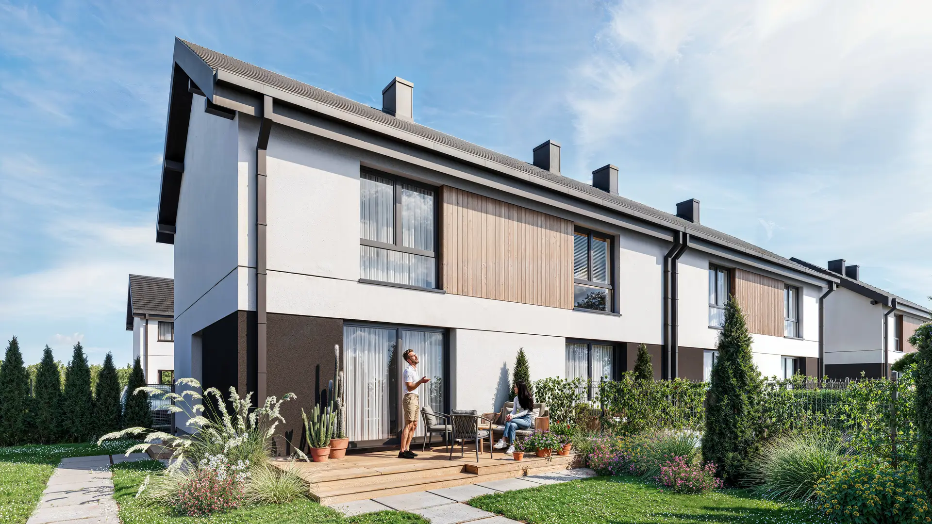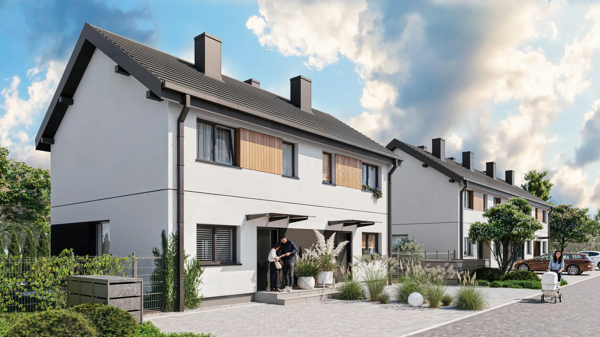 Domy w zabudowie bliźniaczej zaprojektowane z myślą o komforcie mieszkańców, wyróżniają się przestronnymi wnętrzami i prywatnymi ogródkami.